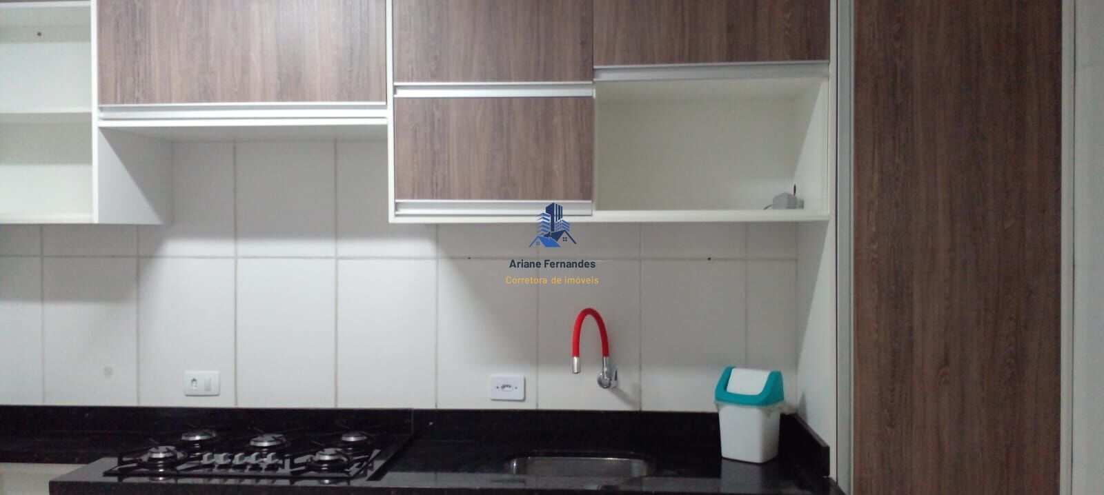 - Cozinha com armários planejados e cooktop